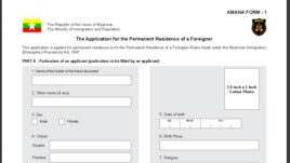 ျမန္မာႏိုင္ငံမွာ အၿမဲတမ္းေနထိုင္ခြင့္ ေလွ်ာက္ထားသူ ၁၀၀ ေက်ာ္ကို အစိုးရက Permanent Resident (PR) ကဒ္ေတြ တရား၀င္ စတင္ ထုတ္ေပးေနၿပီျဖစ္ပါတယ္။ အခု အၿမဲတမ္းေနထုိင္ခြင့္ရသူ အမ်ားစုက ျမန္မာႏုိင္ငံသားေဟာင္းေတြျဖစ္ ၿပီး၊ ေနာက္ထပ္ ေလွ်ာက္ထားသူေတြကိုလည္း ထပ္မံထုတ္ေပးဖို႔ စိစစ္ေနၿပီျဖစ္တဲ့အေၾကာင္း လူ၀င္မႈႀကီးၾကပ္ေရးနဲ႔ ျပည္သူ႔အင္အား ၀န္ႀကီးဌာနက ေျပာပါတယ္။